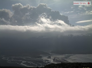 Az Izlandi Meteorológiai Intézet és az Izlandi egyetem Földtudományi Intézetének tegnap esti jelentése intenzívebb vulkáni működésről számolt be. Sajnos a tegnapi nap folyamán szinte végig felhőben volt az Eyjafjöll vulkán, azonban dél körül volt egy rövid időszak, amikor a felhők mögött kibukkant a sötét vulkáni hamufelhő: